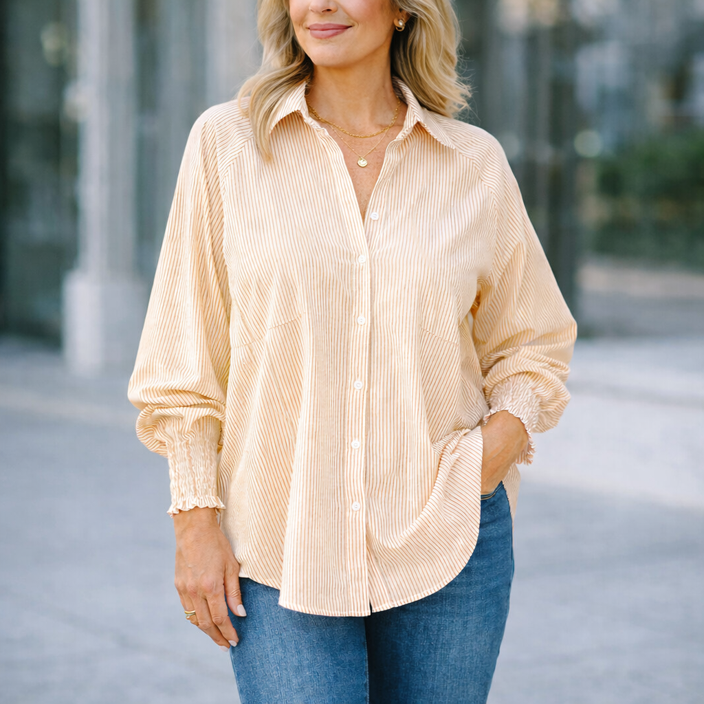 Maude | Relaxed-Fit Blouse is designed for women who value comfort without compromising on style. With its breezy silhouette and softly structured details, this shirt drapes naturally over the body, creating a relaxed yet polished look. Perfect for slow mornings, casual lunches, or everyday errands, Maude is the kind of timeless staple you’ll reach for again and again.